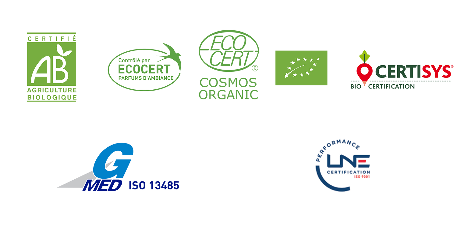 Nos huiles essentielles, nos huiles végétales ainsi que nos hydrolats répondent aux plus hauts critères de qualité. Tous nos ingrédients aromatiques (huiles essentielles, hydrolats et extraits aromatiques) sont 100% purs et naturels (non dilués) et obtenus par des procédés physiques respectant la norme internationale ISO 9235.